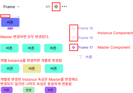- Frame : 화면요소와 화면을 담는 컨테이너 그룹 (속성변경시 콘텐츠에 영향없음)