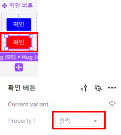 - 컴포넌트를 누르고 프로퍼티를 누르면 메뉴가 뜨고