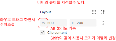 - Frame : 화면요소와 화면을 담는 컨테이너 그룹 (속성변경시 콘텐츠에 영향없음)